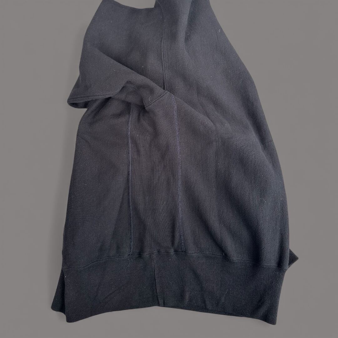 90’sの濃紺、ネイビーのリバースウィーブを黒染めした一枚です。
