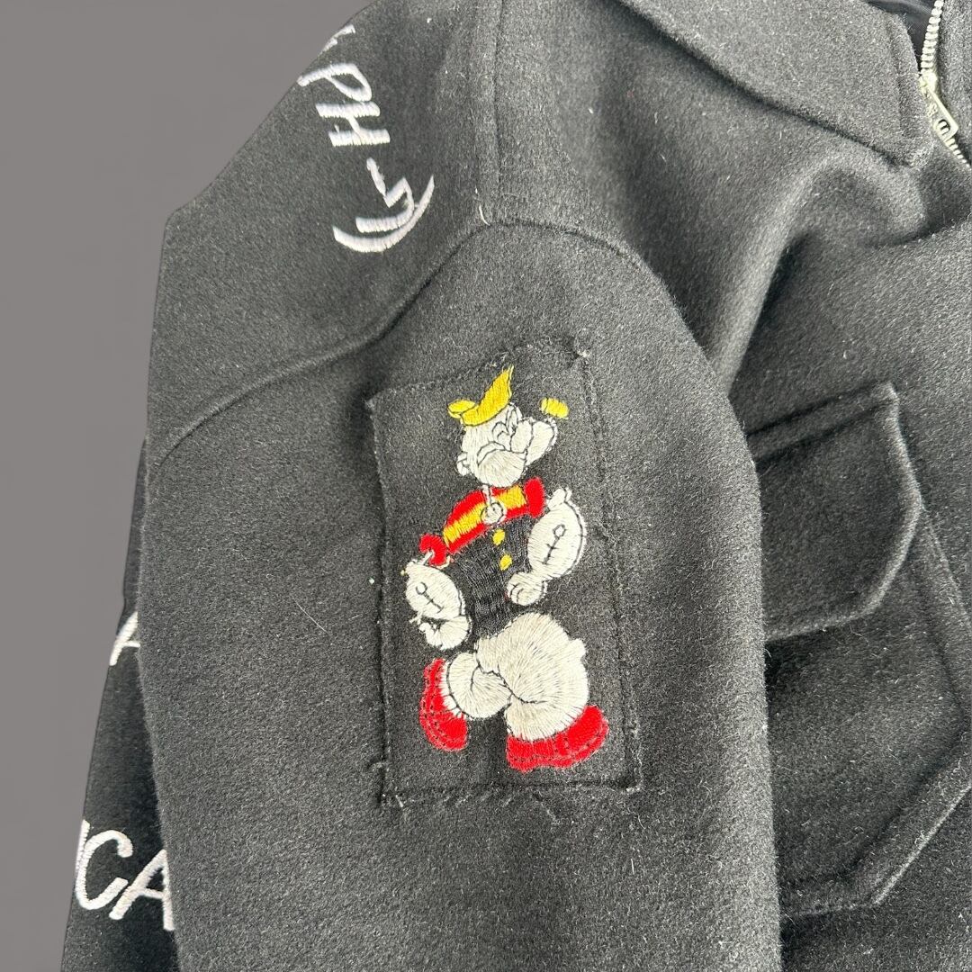 寄港地がそのまま刺繍で記された“一点物”らしいデザイン両袖には POPEYEと GEMINI(双子座) のワッペンで船乗りの間ではお守りのように付けられてきたモチーフです!