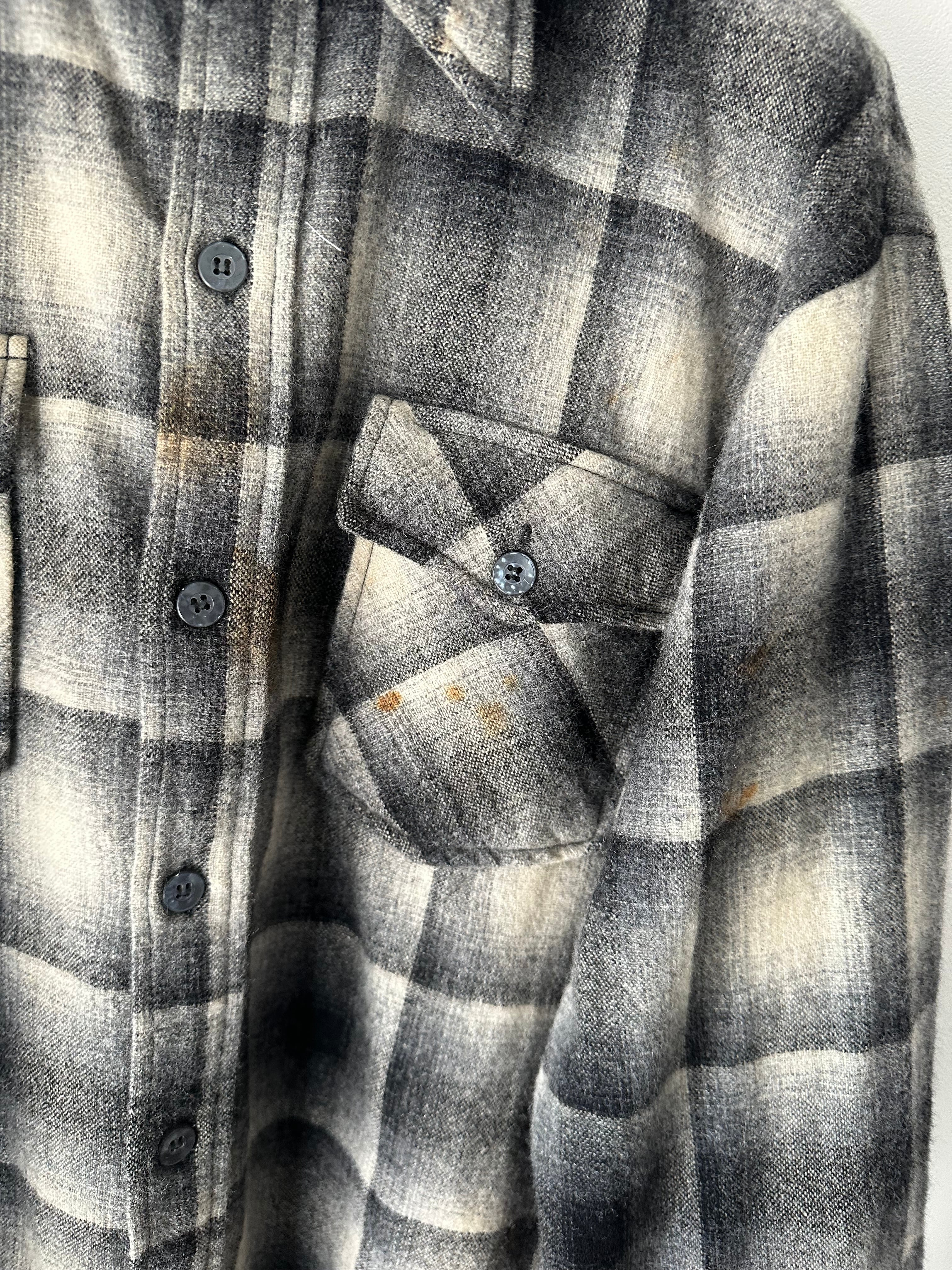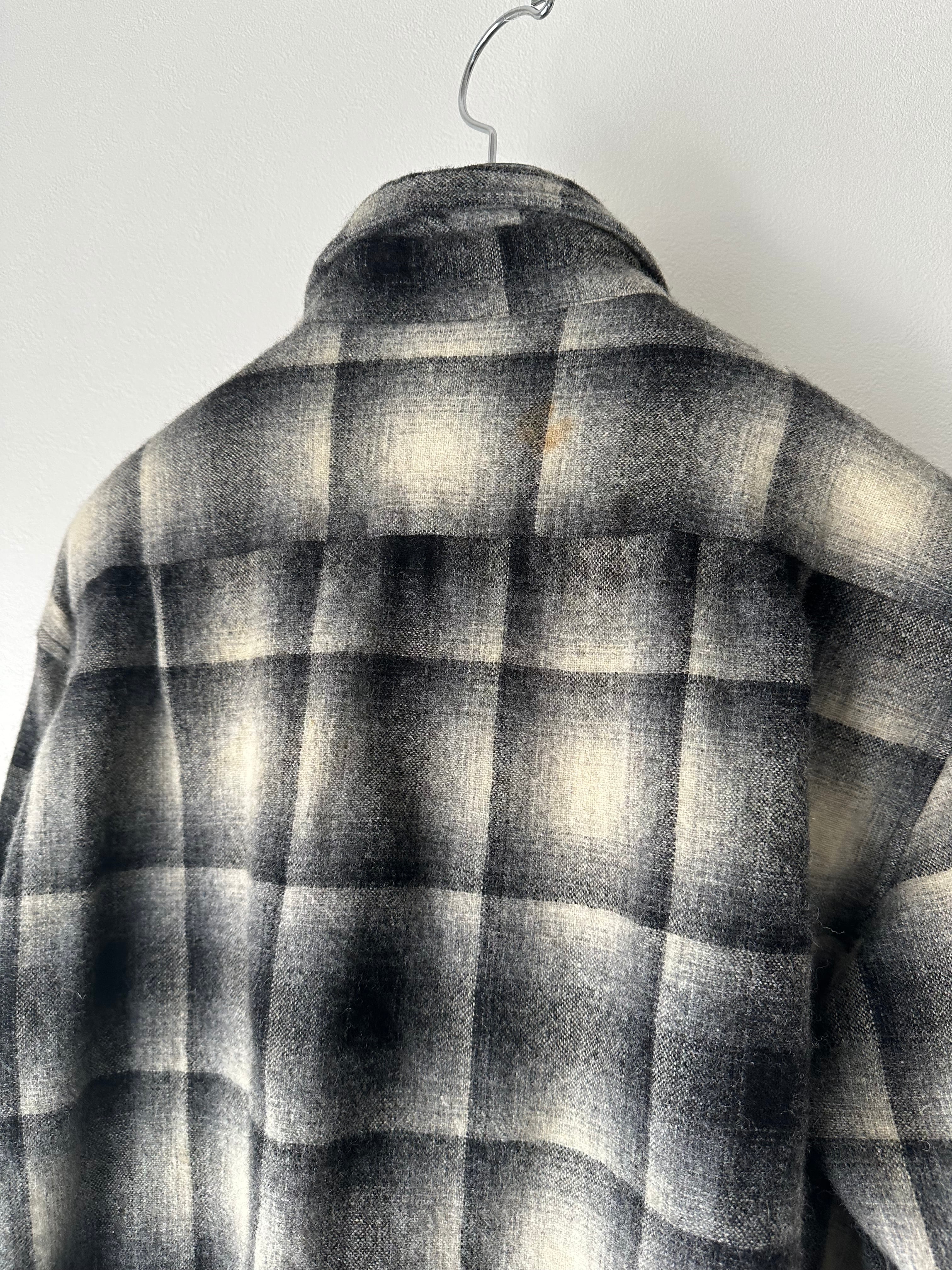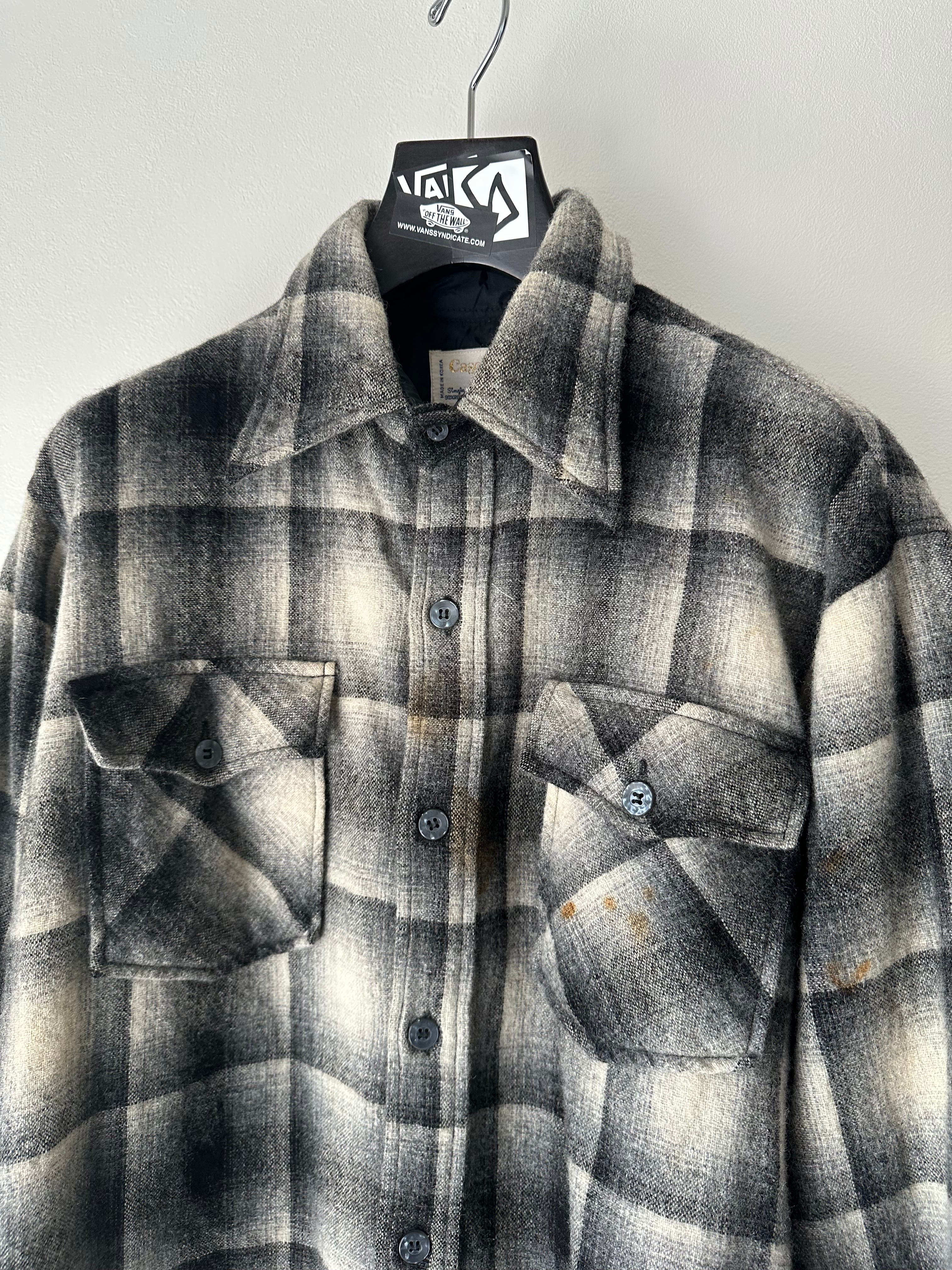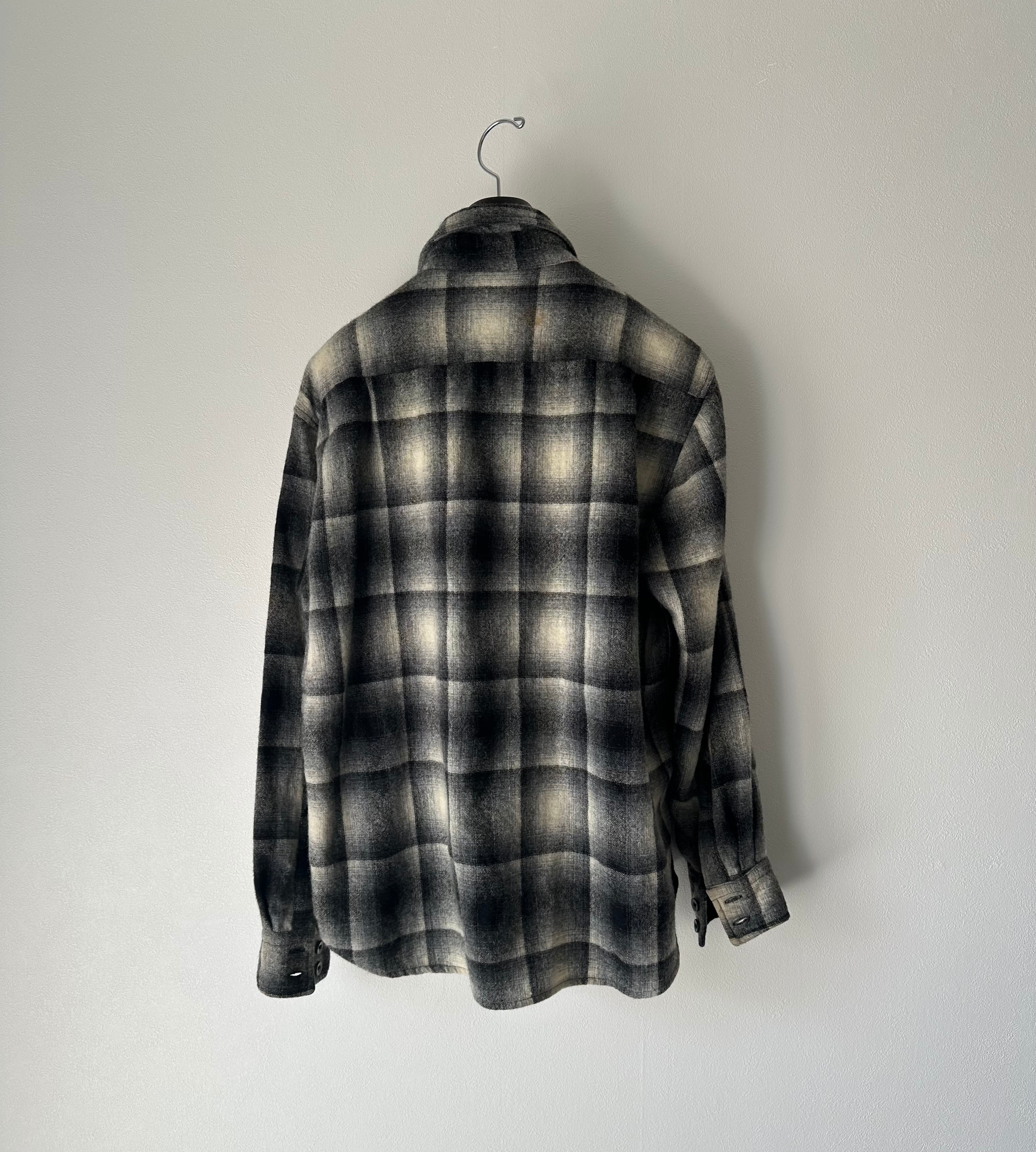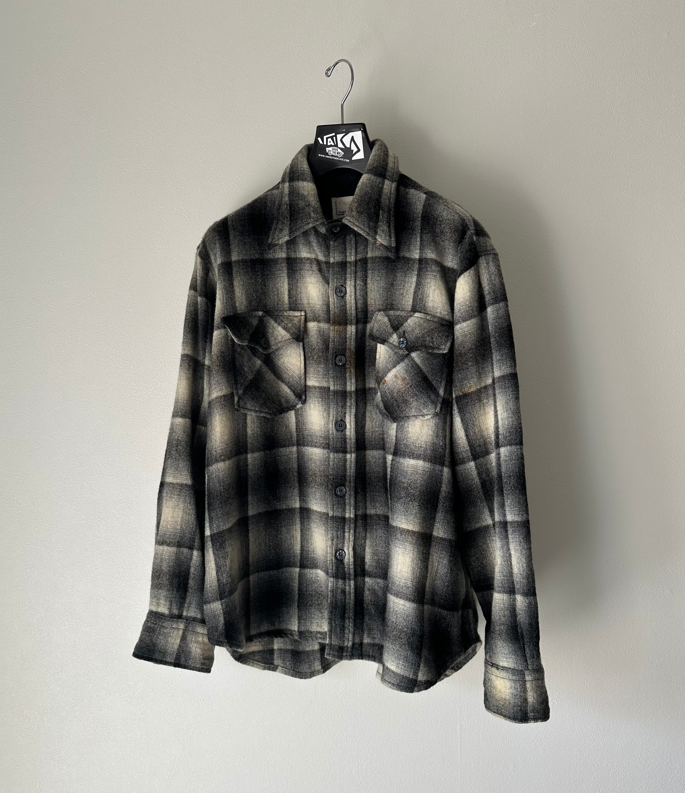 70's cascade wool black check shirt L